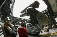 [12] V-22 오스프리가 별도의 내열판을 깔지 않고 그냥 맨 갑판에서 이륙하는 장면이 포착됐다. V-22의 운용을 위해서는 내열판을 필요로 하고 있기에 이 문제를 해소하기 위한 향후의 개량이 필요한 오오스미급의 비행갑판과는 달리, 휴우가급의 비행갑판에는 처음부터 내열처리가 되어 있다는 증거.